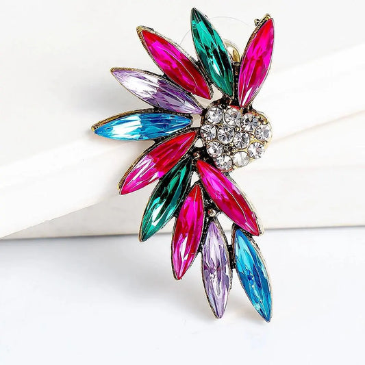 Vintage Golden Leaf Colorful Zirconia Earrings